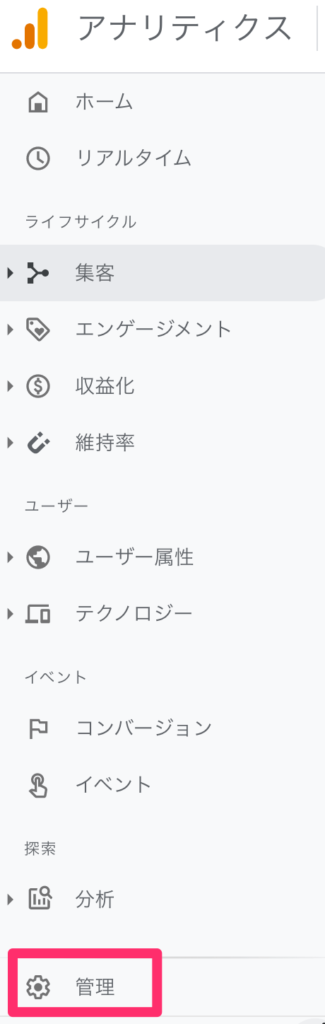 Google analyticsの管理画面にログインします。