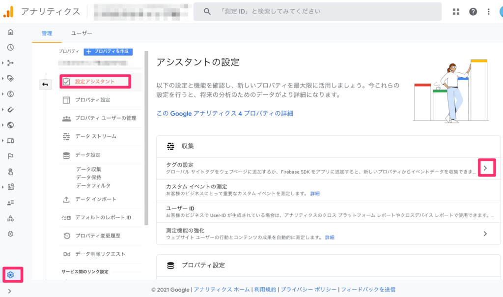 「設定アシスタント」→「タグの設定」をクリック