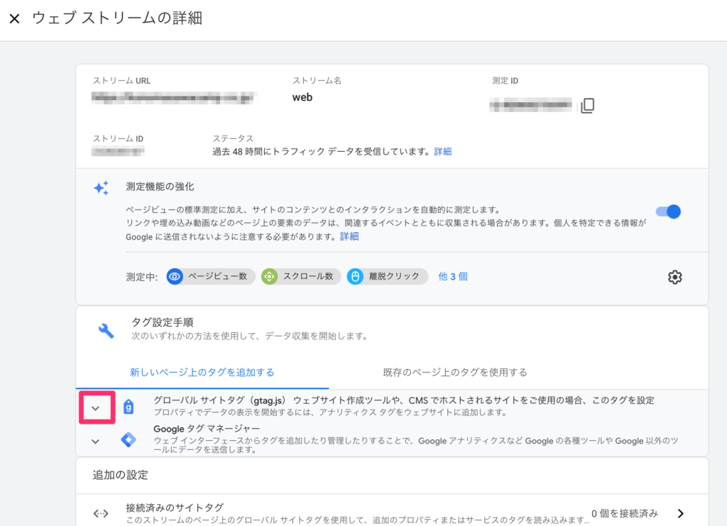 真ん中へんの、「グローバルサイトタグ」の左の舌矢印をクリック